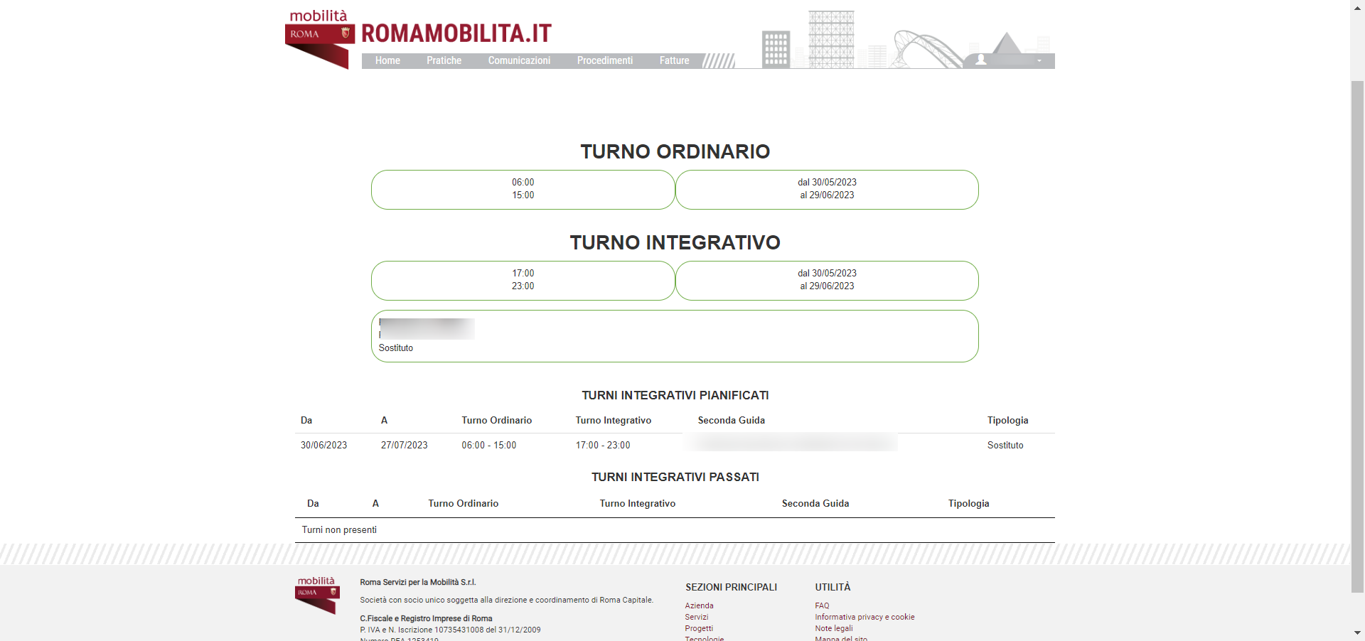 Inoltre, accedendo alla sezione Turno Integrativo presente nella HomePage, visibile dopo che è stata approvata almeno una richiesta per il turno integrativo, è possibile visualizzare il dettaglio dei turni integrativi attivi, pianificati o passati: