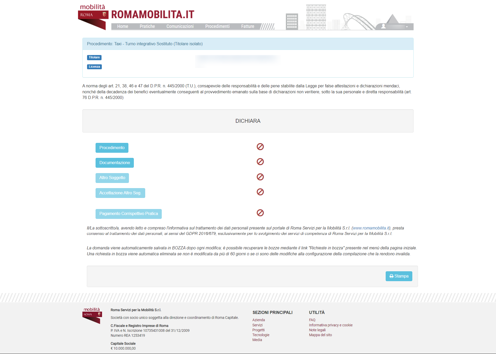 Una volta che il sistema avrà acquisito i dati del pagamento sarà possibile procedere all'invio del modulo di richiesta che sarà sottoposto alla lavorazione degli operatori di Roma servizi per la Mobilità.